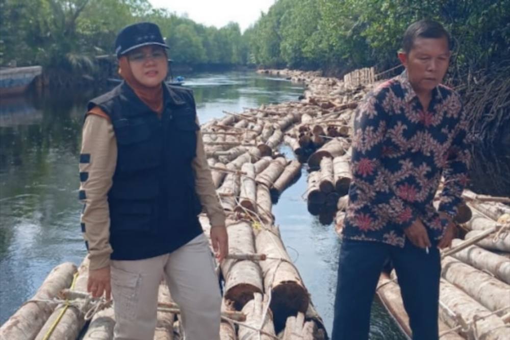 Diduga kayu-kayu siap angkut itu sengaja disembunyikan di balik rimbunnya tanaman air bakung dan mangrove di tepi sungai.